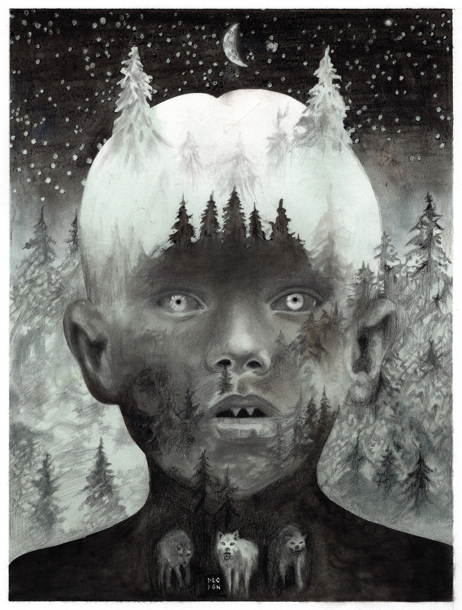 Crescent, Graphite and Pastels on Paper, 24×32 cm, 2019