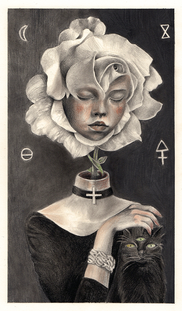 The Lonely Sorcerer’s Wish, Graphite and Pastels on Paper, 9″x5,2″, 2019