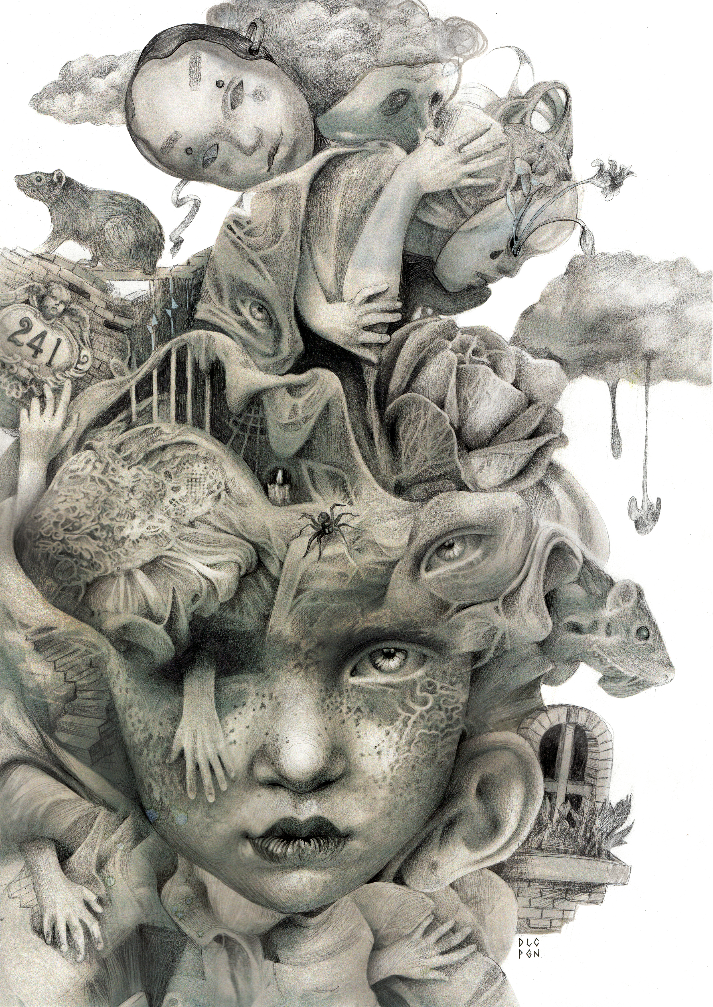 Hunger, Graphite, Ballpoint and Pastels on Paper, 24×32 cm, 2019